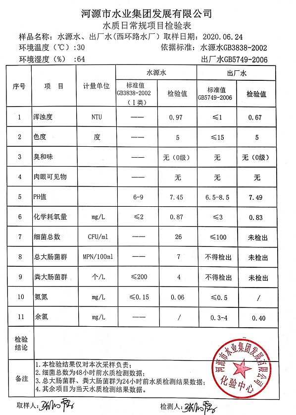 2020年6月24日水質(zhì)檢驗(yàn)報(bào)告