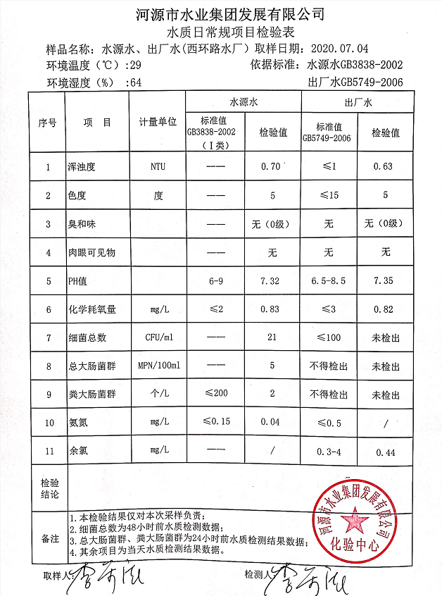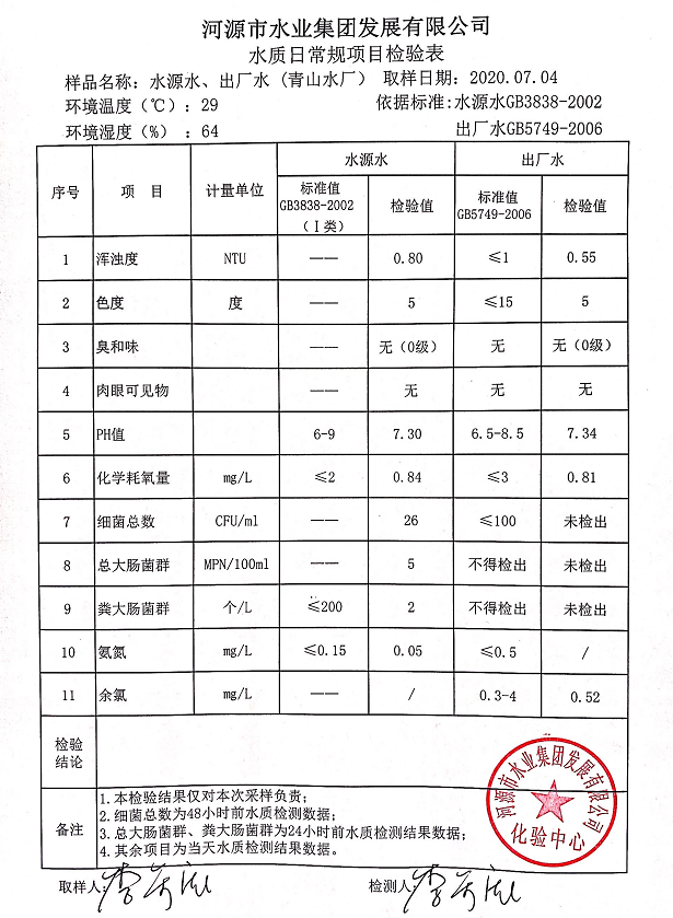 2020年7月4日水質(zhì)檢驗(yàn)報(bào)告