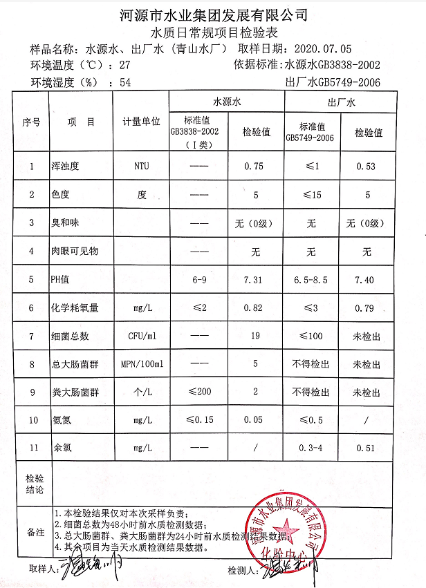 2020年7月5日水質(zhì)檢驗(yàn)報告