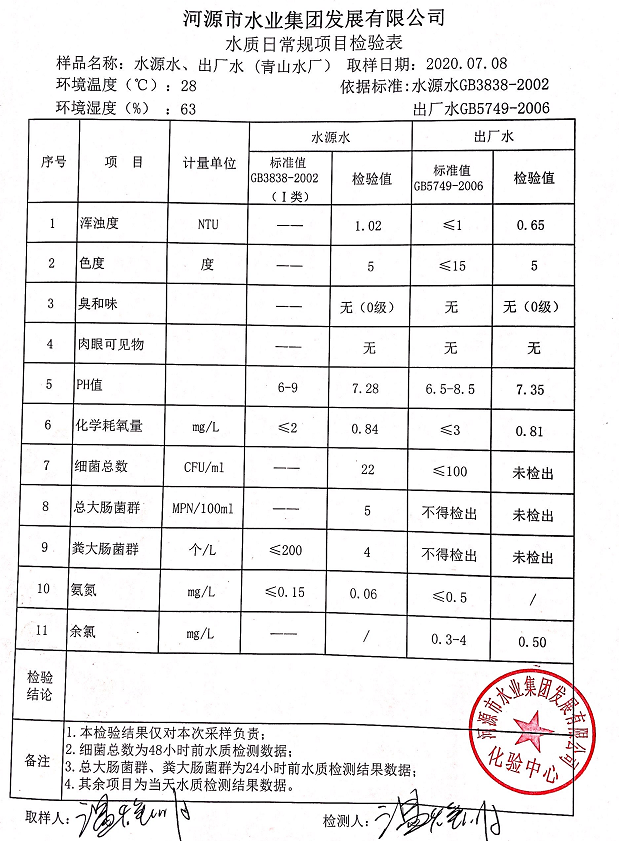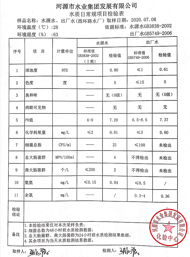 2020年7月8日水質(zhì)檢驗(yàn)報(bào)告