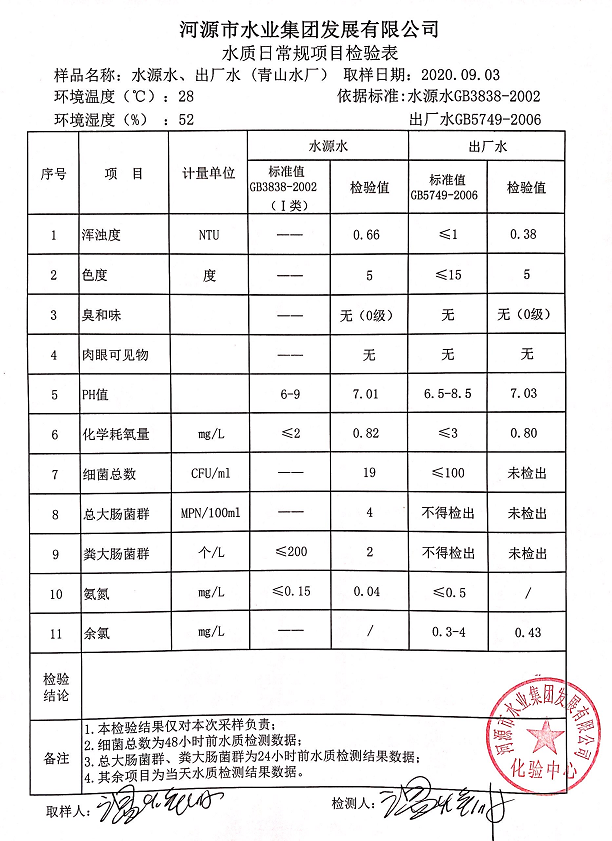 2020年9月3日水質(zhì)檢驗(yàn)報告