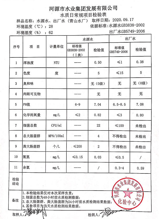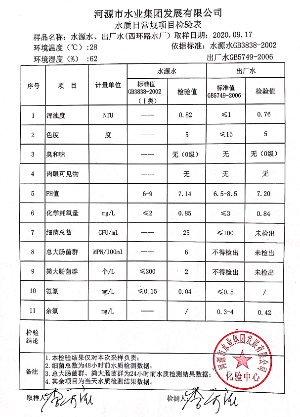 2020年9月17日水質(zhì)檢驗(yàn)報(bào)告