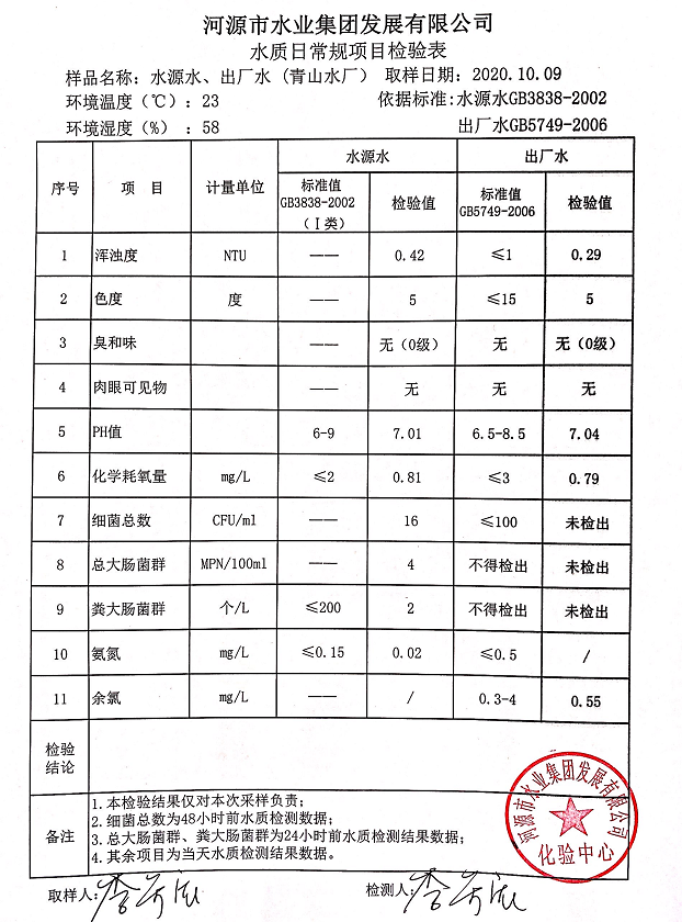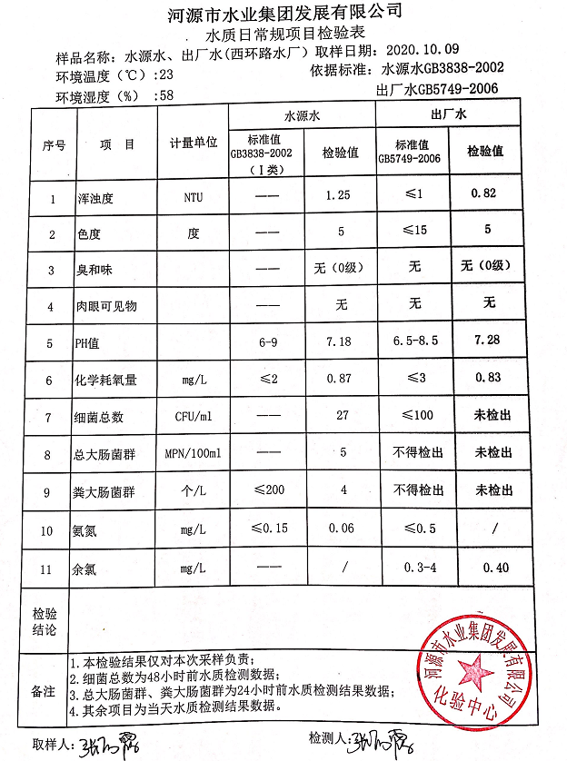 2020年10月9日水質(zhì)檢驗(yàn)報(bào)告