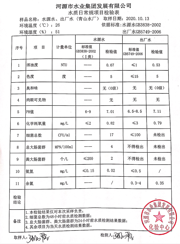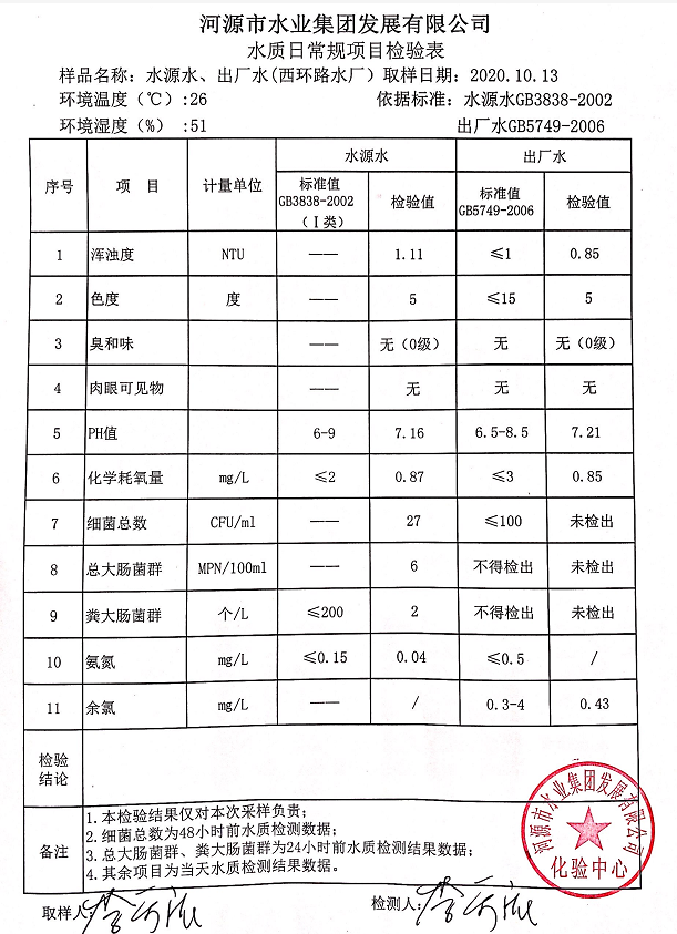 2020年10月13日水質(zhì)檢驗(yàn)報(bào)告