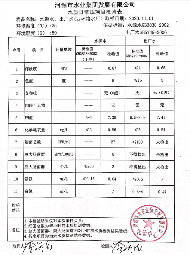 2020年11月1日水質(zhì)檢驗(yàn)報(bào)告