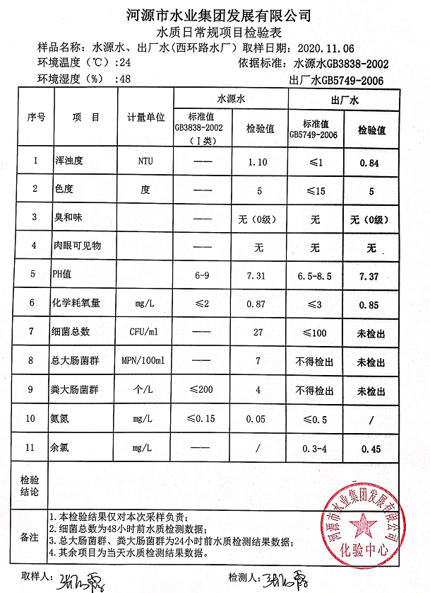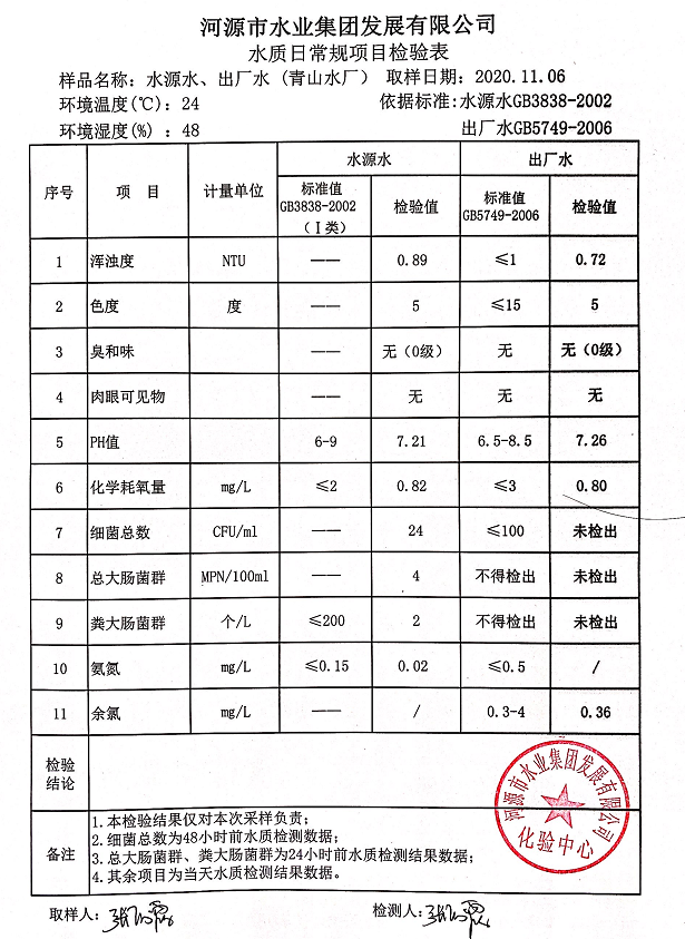 2020年11月6日水質(zhì)檢驗(yàn)報(bào)告