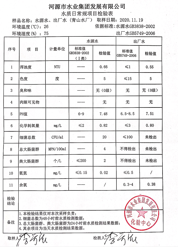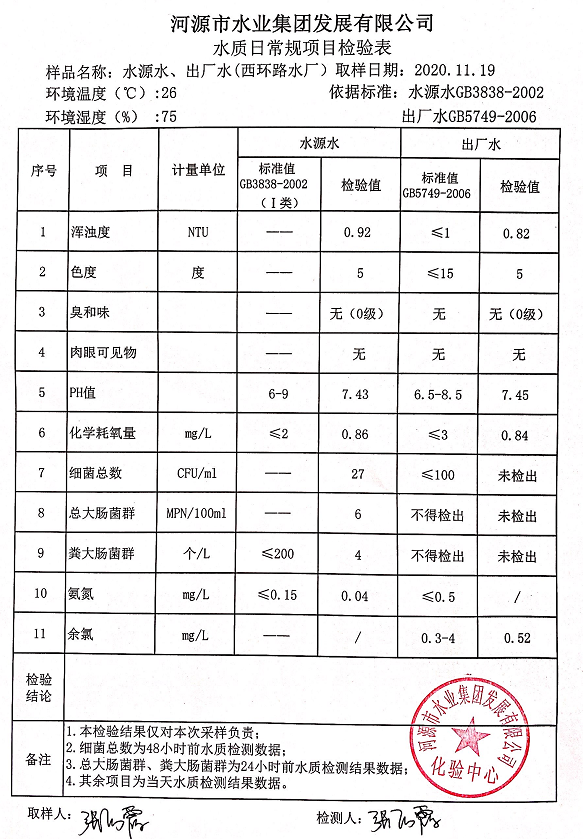 2020年11月19日水質(zhì)檢驗報告
