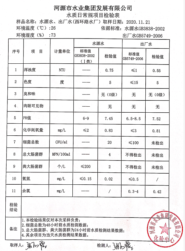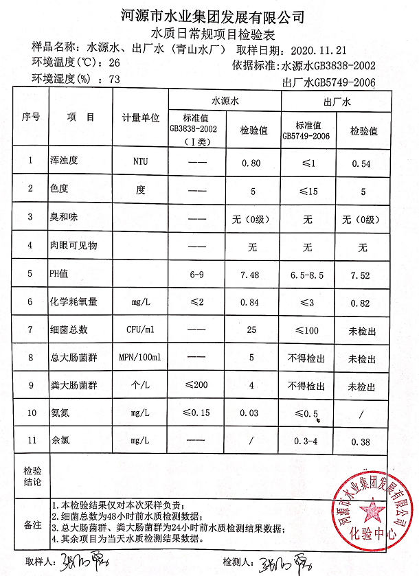 2020年11月21日水質(zhì)檢驗報告