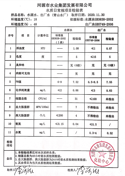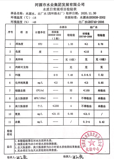 2020年11月30日水質(zhì)檢驗(yàn)報(bào)告