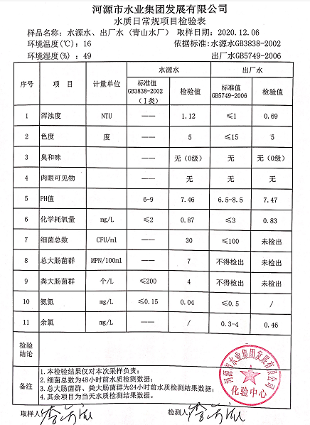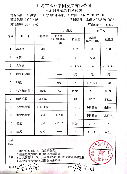 2020年12月6日水質(zhì)檢驗(yàn)報(bào)告