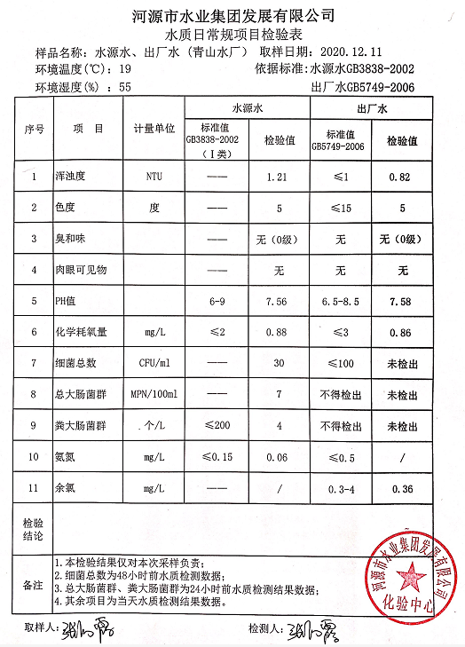 2020年12月11日水質檢驗報告