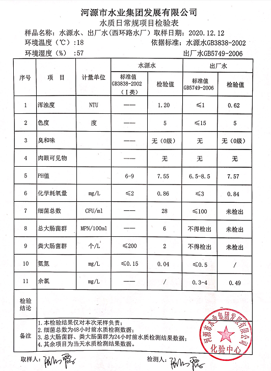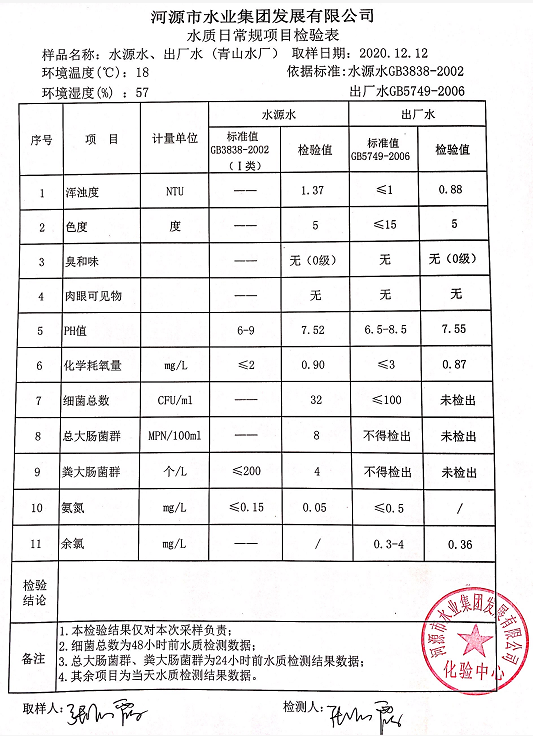 2020年12月12日水質(zhì)檢驗(yàn)報(bào)告