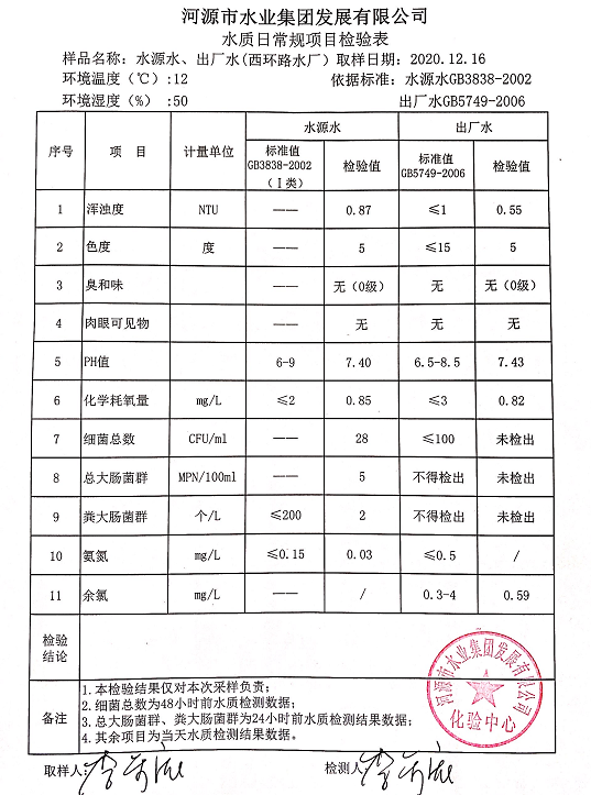 2020年12月16日水質(zhì)檢驗報告