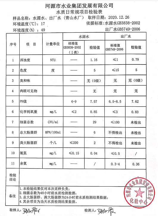 2020年12月26日水質(zhì)檢驗(yàn)報(bào)告
