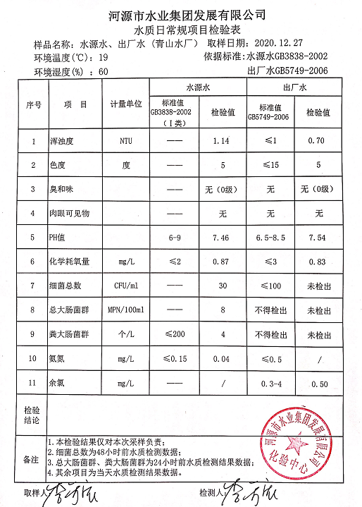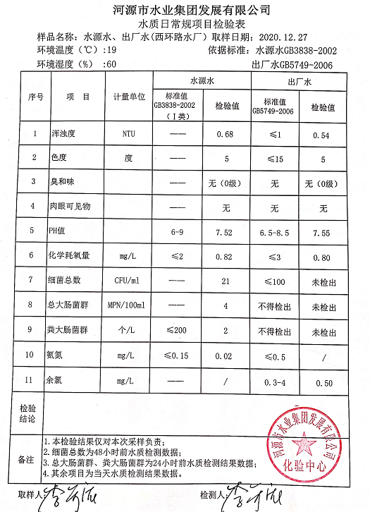 2020年12月27日水質(zhì)檢驗(yàn)報(bào)告