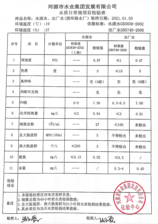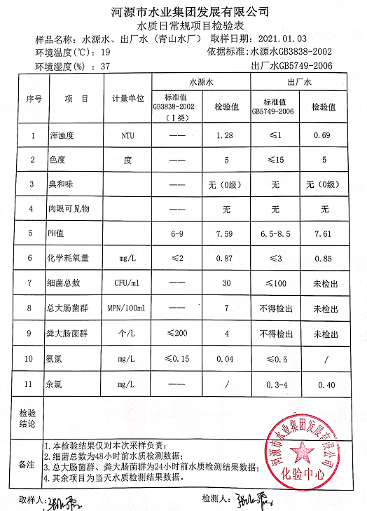 2021年1月3日水質(zhì)檢驗(yàn)報(bào)告