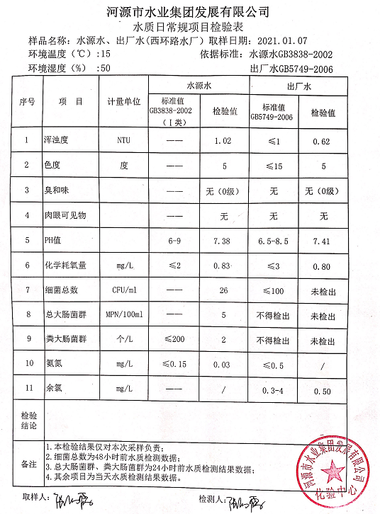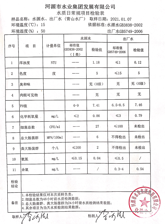 2021年1月7日水質(zhì)檢驗(yàn)報(bào)告