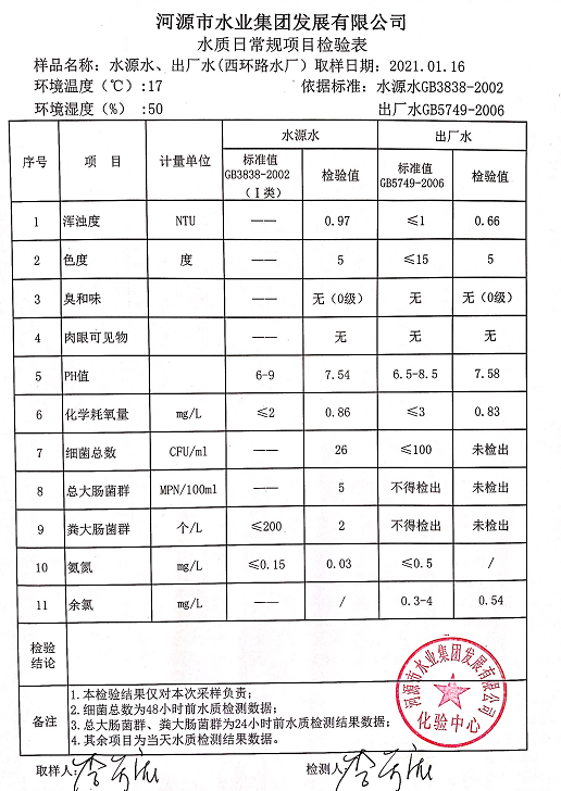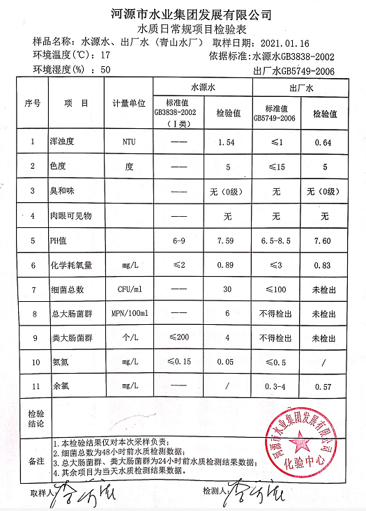2021年1月16日水質檢驗報告
