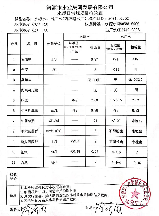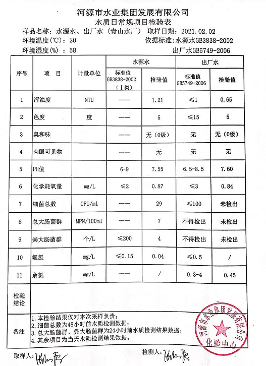 2021年2月2日水質(zhì)檢驗(yàn)報(bào)告