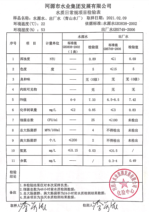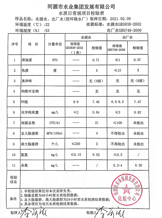 2021年2月9日水質檢驗報告