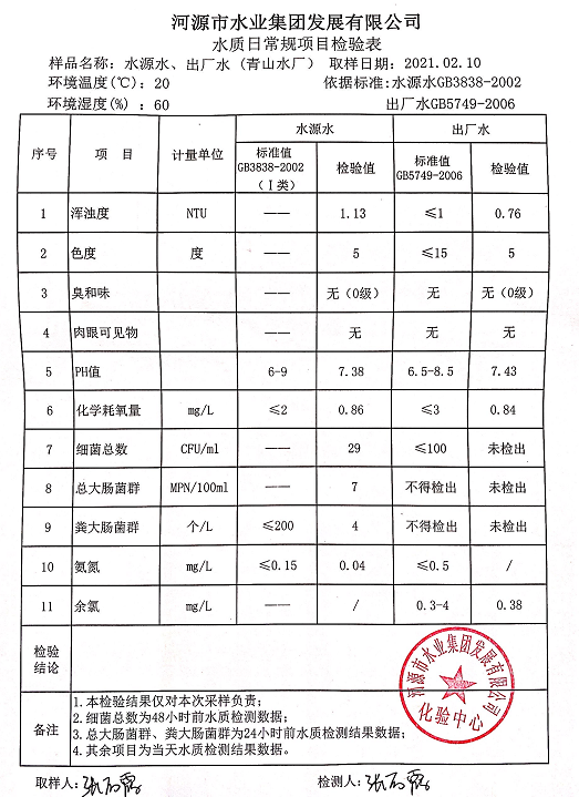 2021年2月10日水質(zhì)檢驗(yàn)報(bào)告