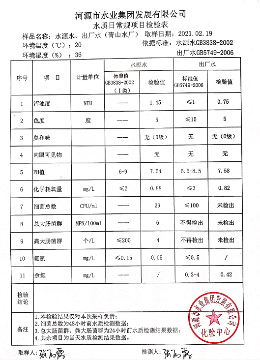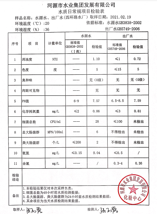 2021年2月19日水質(zhì)檢驗(yàn)報(bào)告