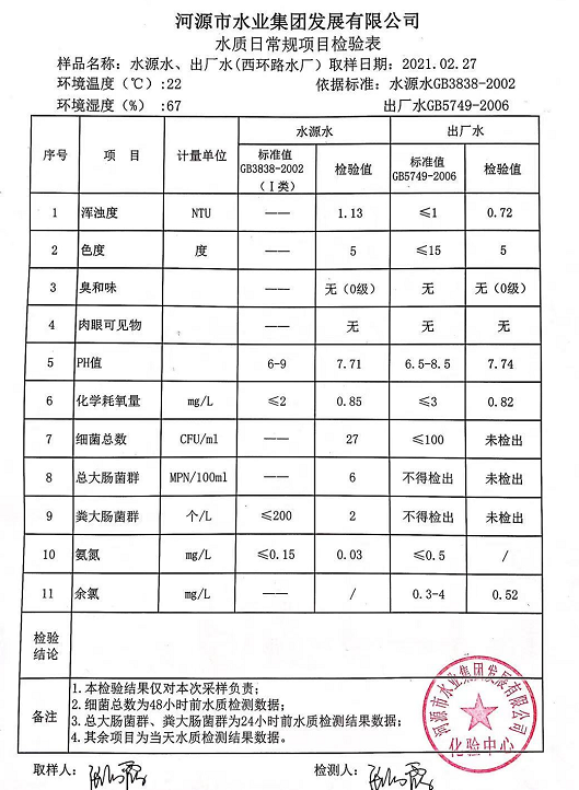 2021年2月27日水質(zhì)檢驗(yàn)報(bào)告