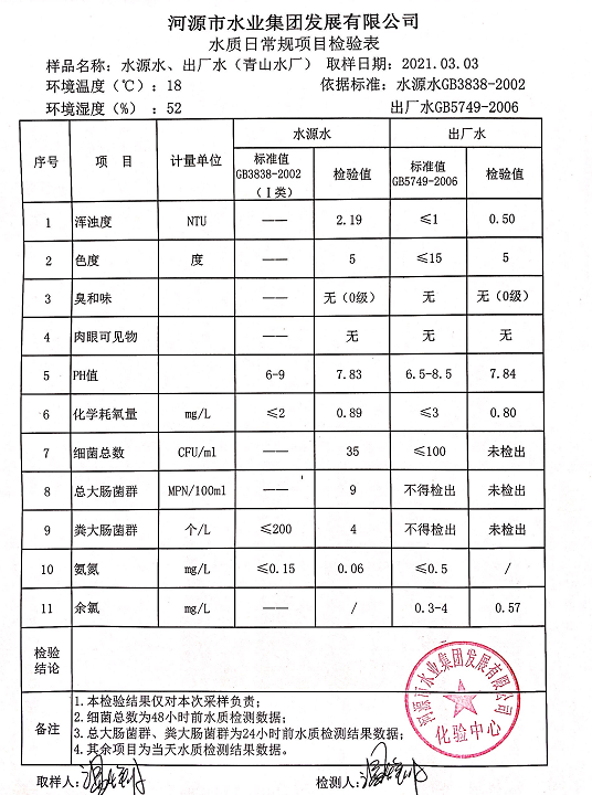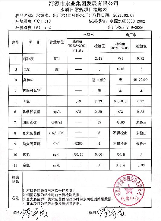 2021年3月3日水質(zhì)檢驗(yàn)報告