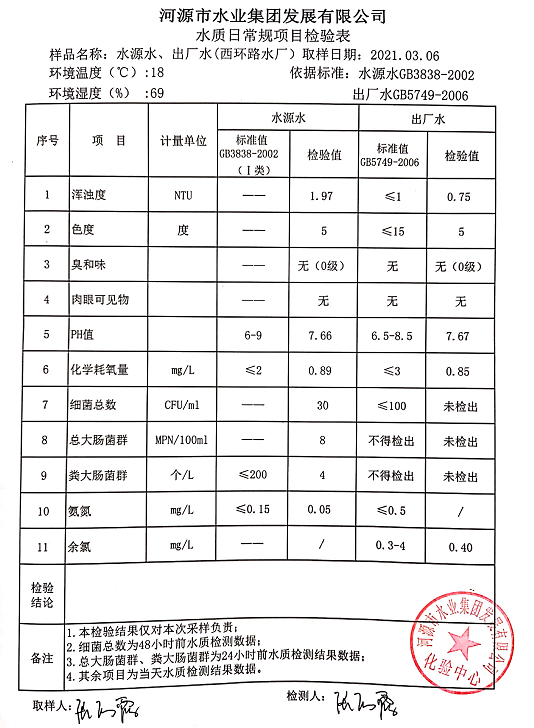 2021年3月6日水質(zhì)檢驗報告