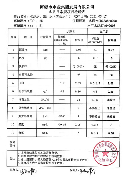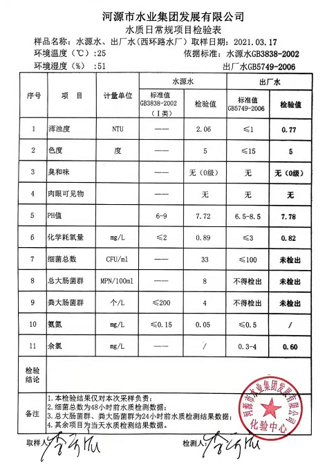 2021年3月17日水質(zhì)檢驗(yàn)報(bào)告