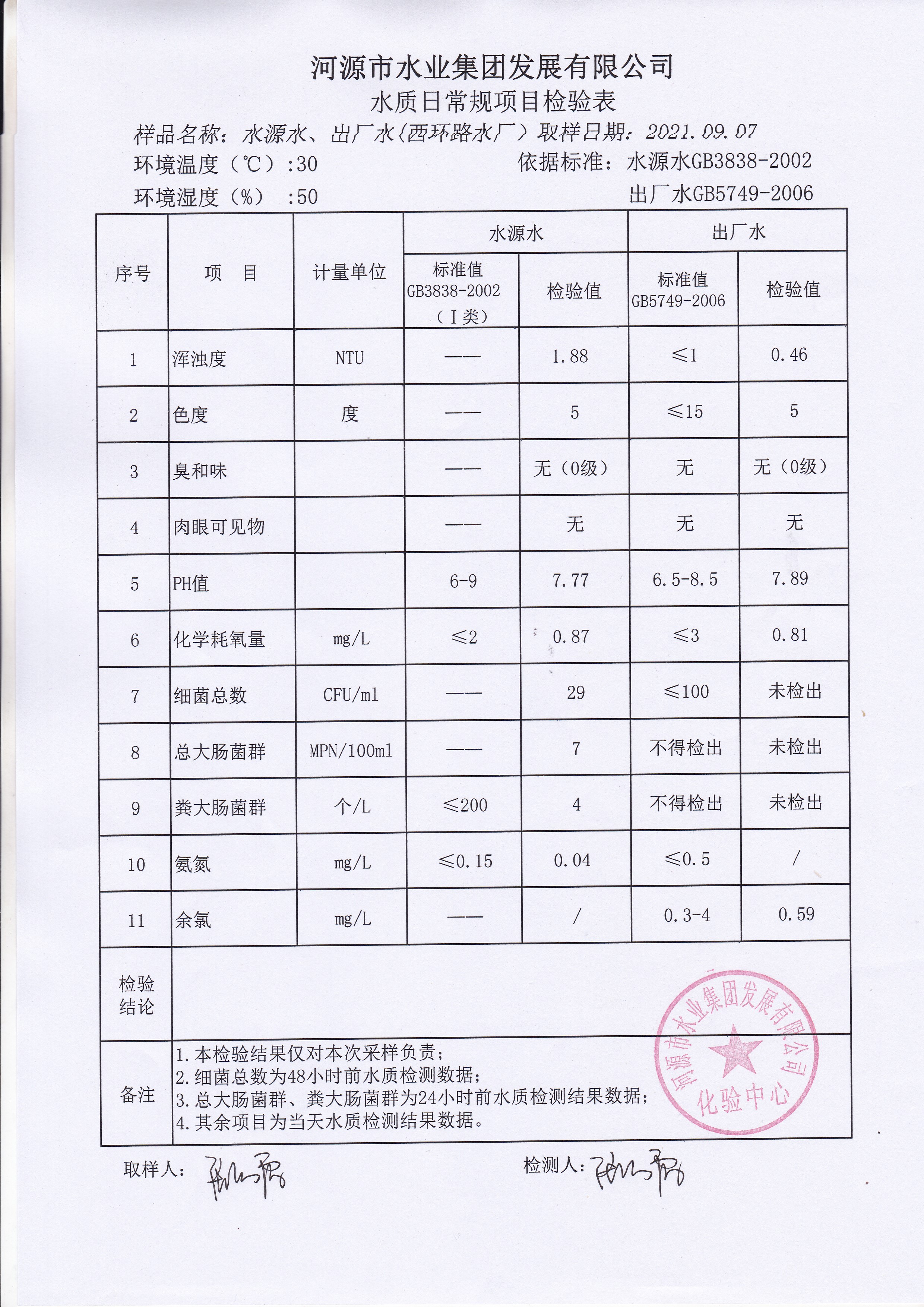 2021年9月7日水質(zhì)檢驗(yàn)報(bào)告 ???