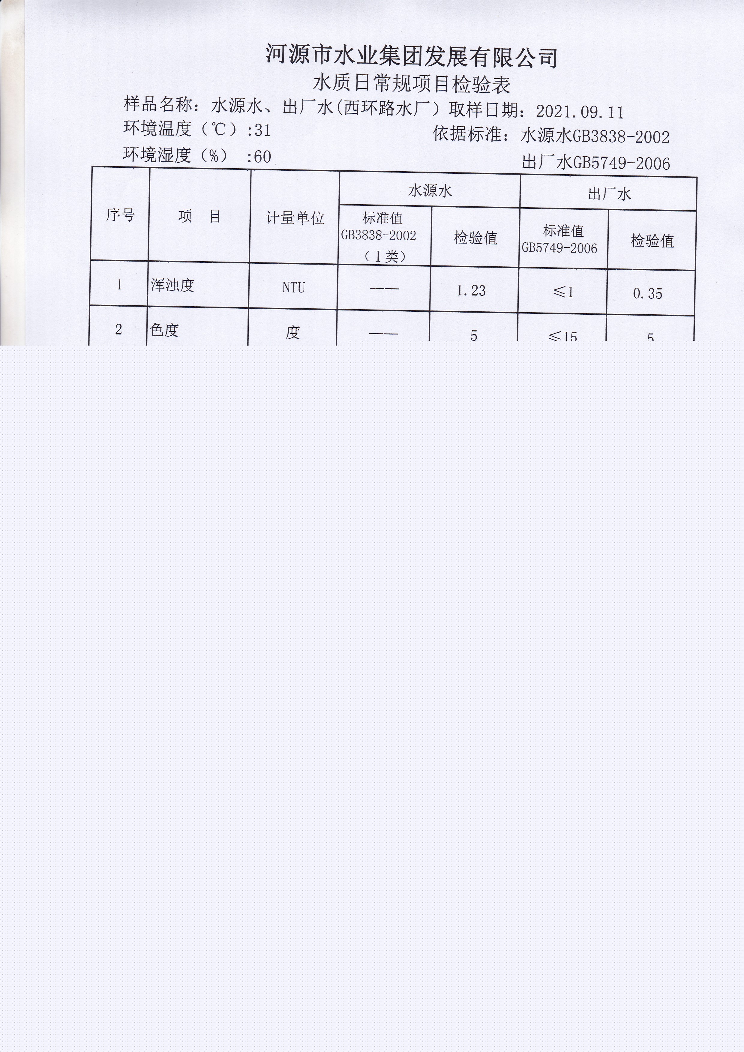 2021年9月11日水質(zhì)檢驗報告 ??