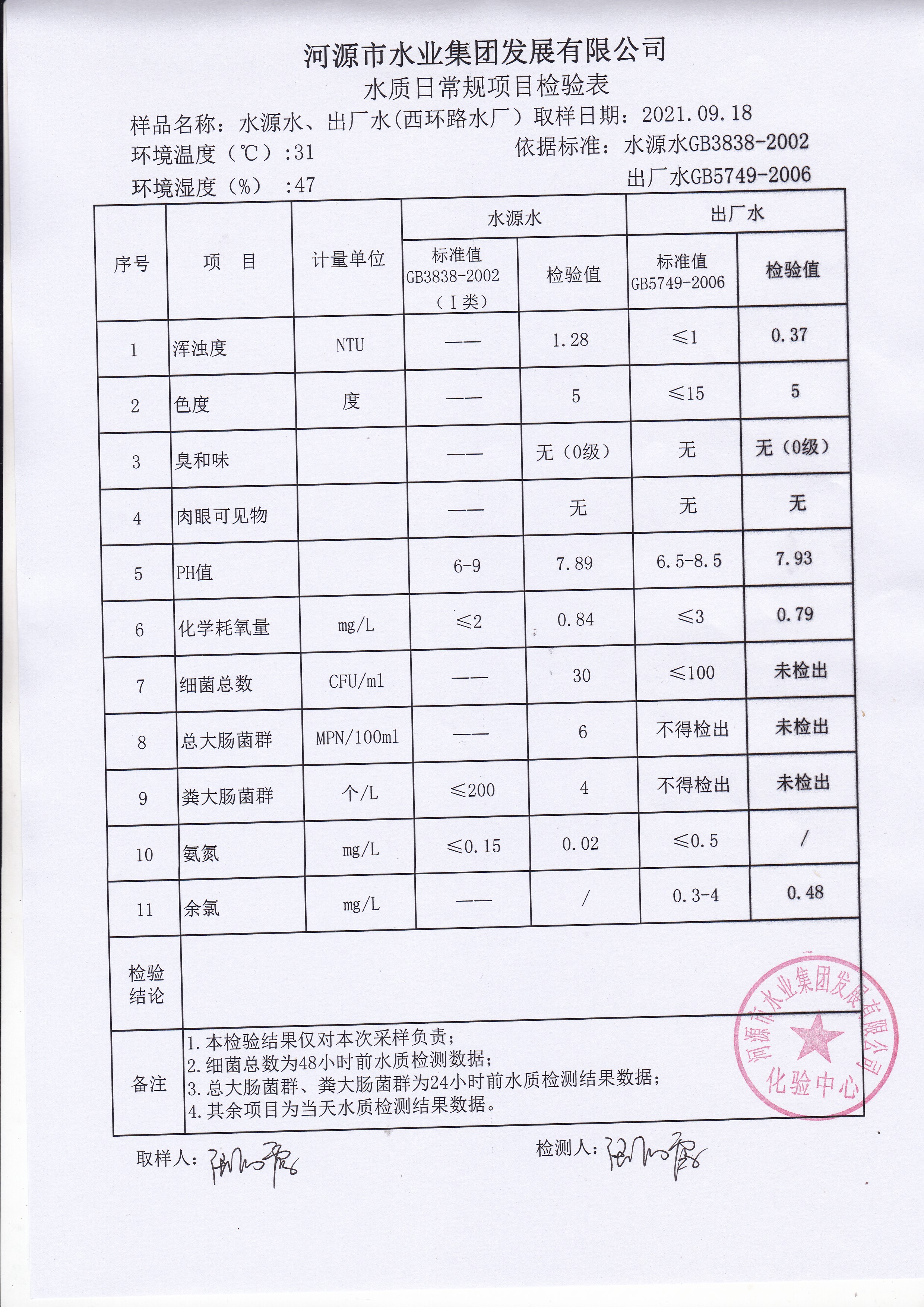 2021年9月1日水質(zhì)檢驗(yàn)報(bào)告 ??