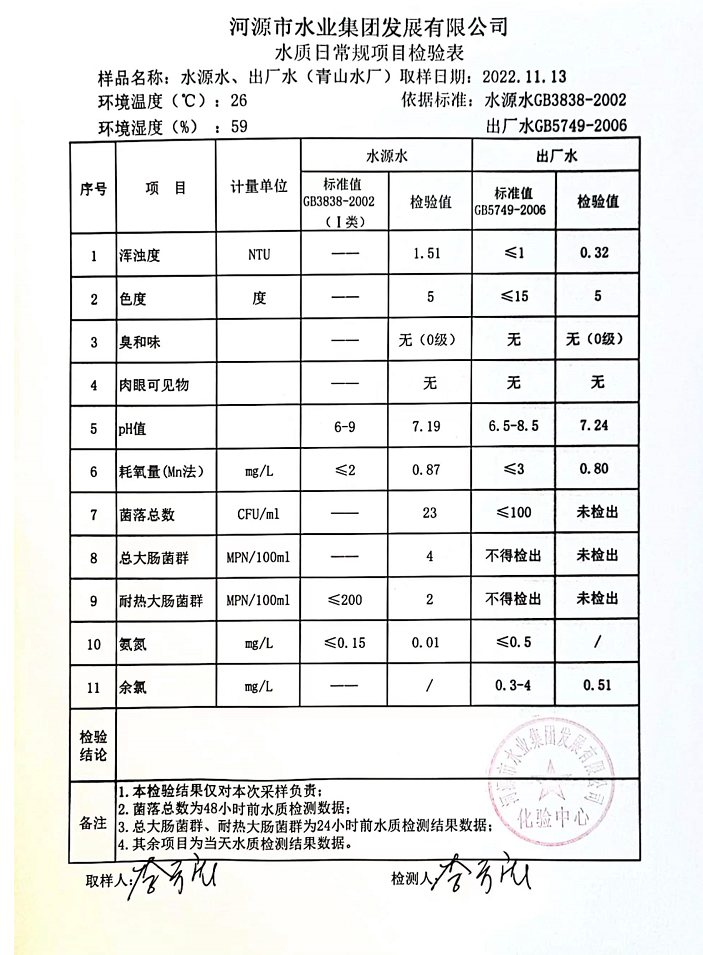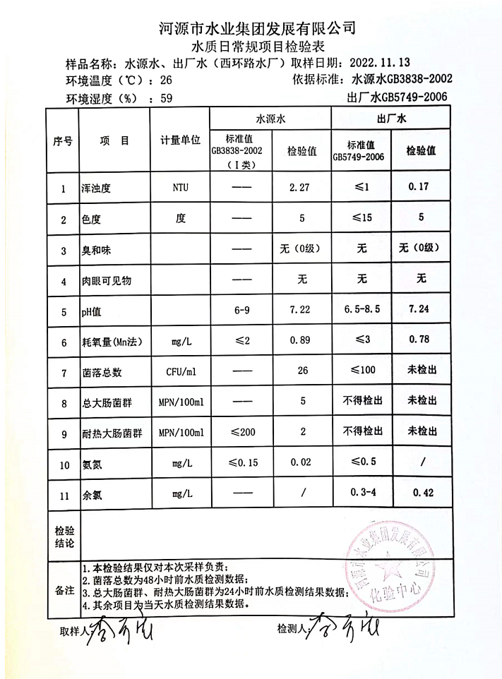2022年11月13日水質(zhì)檢驗報告