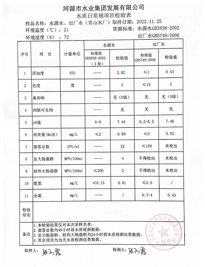 2022年11月25日水質(zhì)檢驗(yàn)報(bào)告