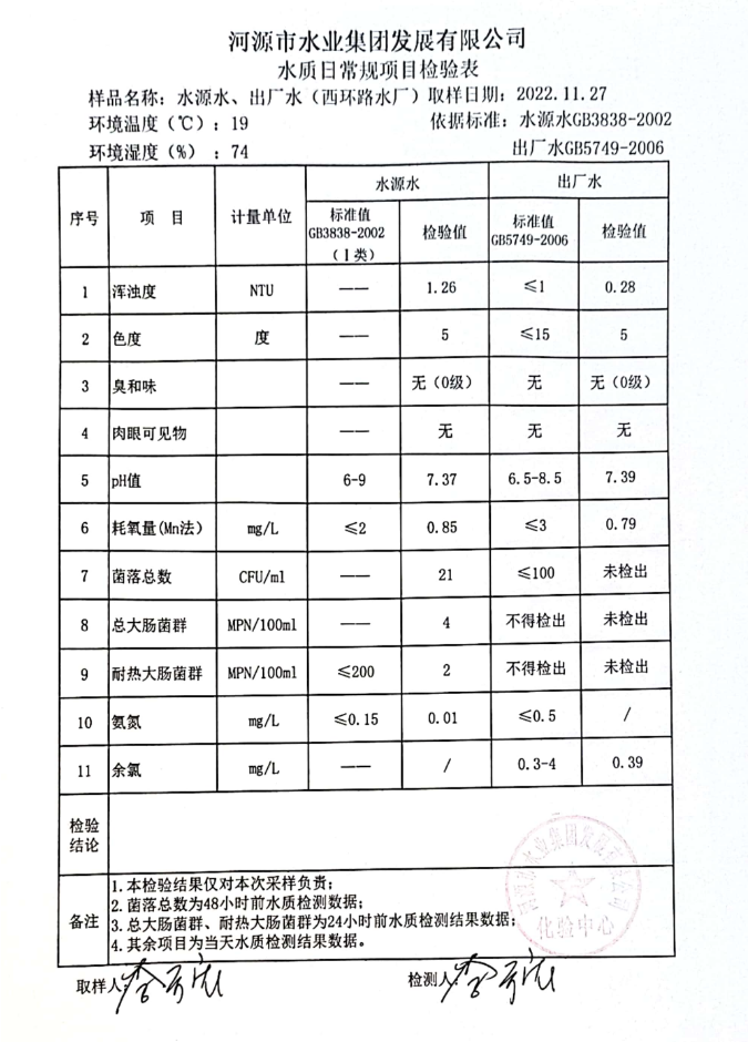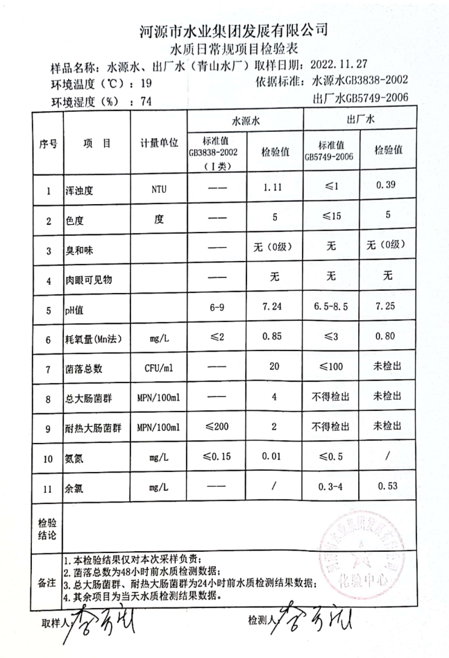 2022年11月27日水質(zhì)檢驗(yàn)報(bào)告