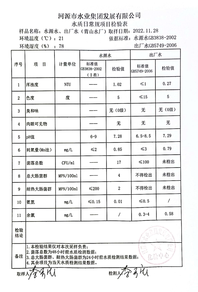 2022年11月28日水質(zhì)檢驗報告