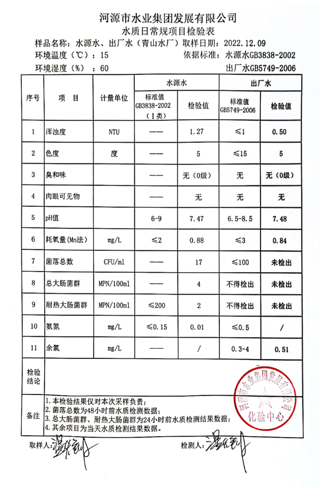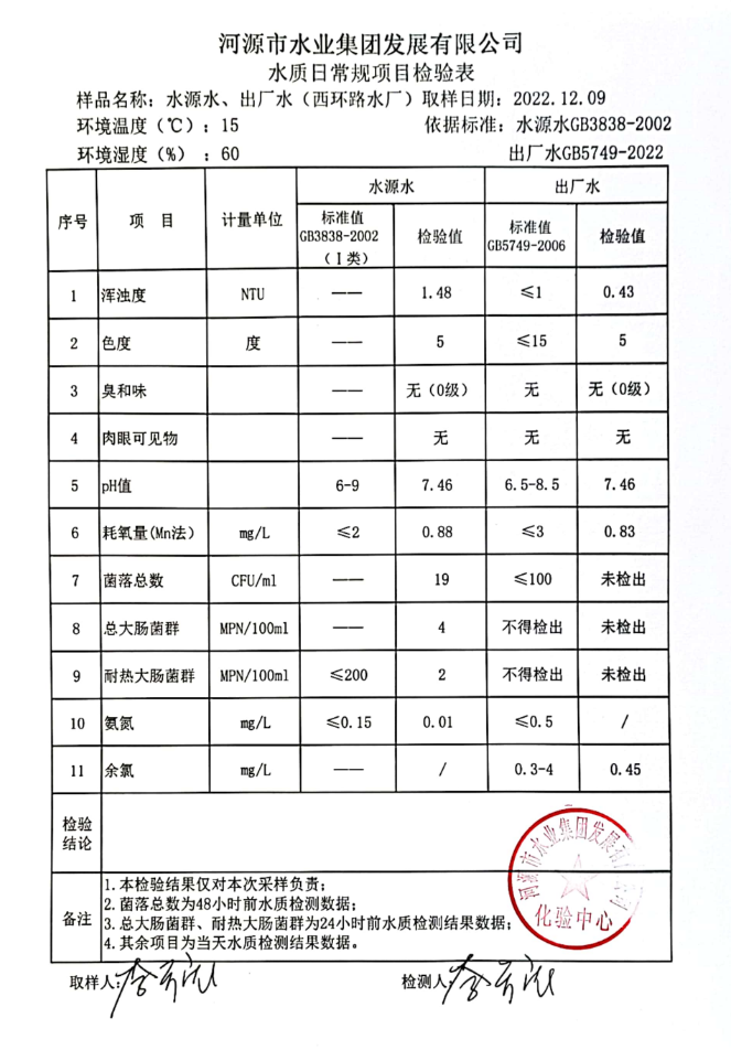2022年12月9日水質(zhì)檢驗(yàn)報(bào)告