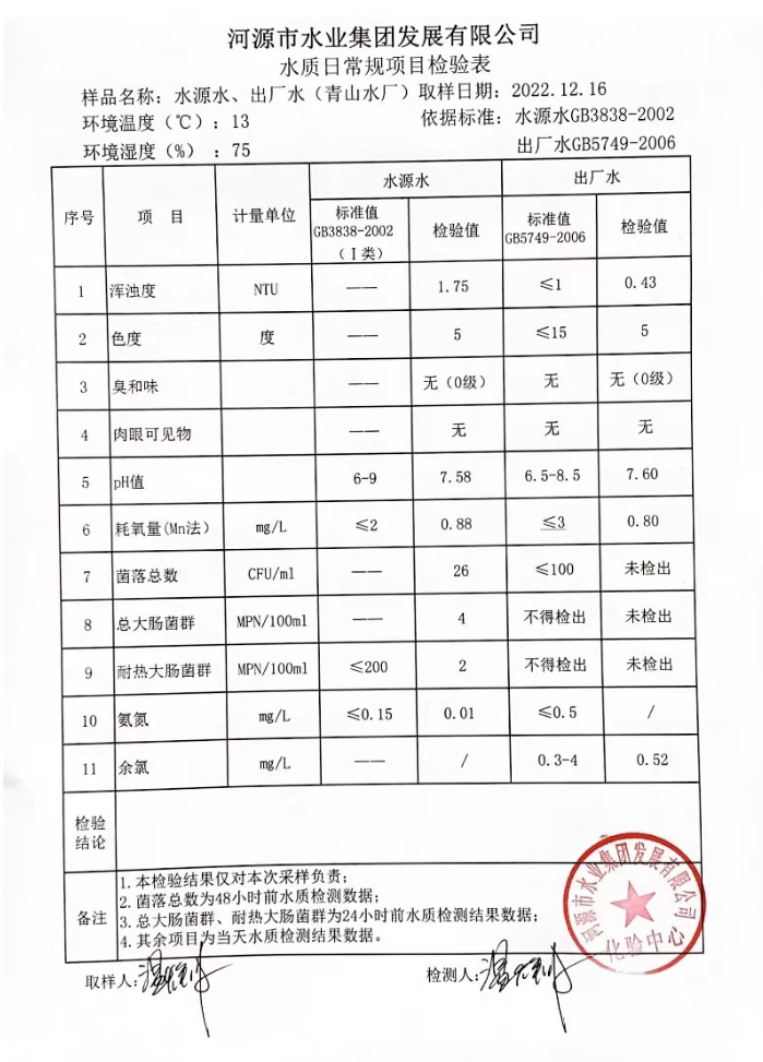 2022年12月16日水質(zhì)檢驗(yàn)報(bào)告