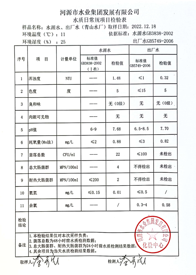 2022年12月18日水質(zhì)檢驗報告