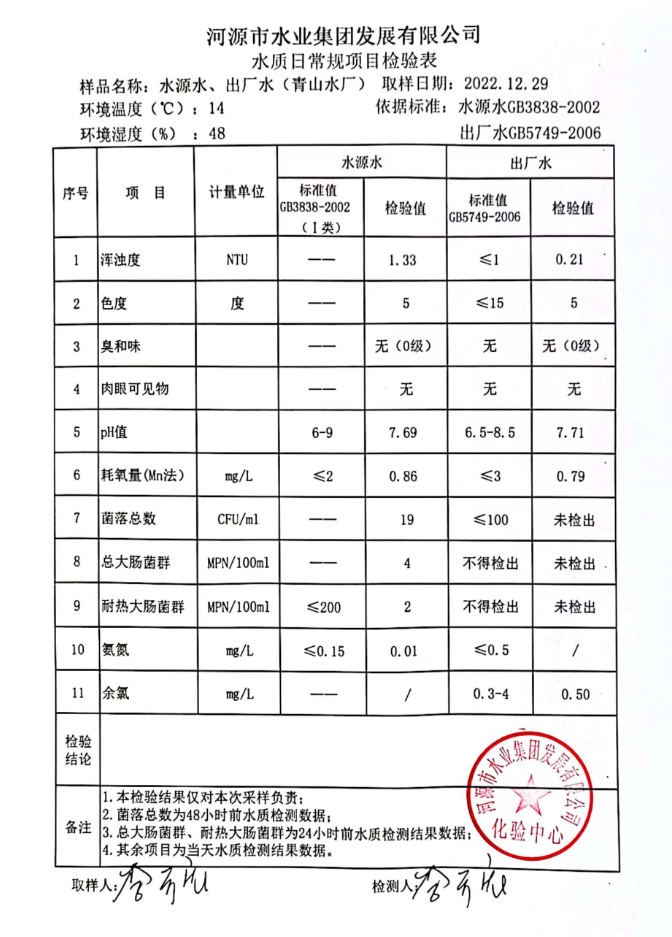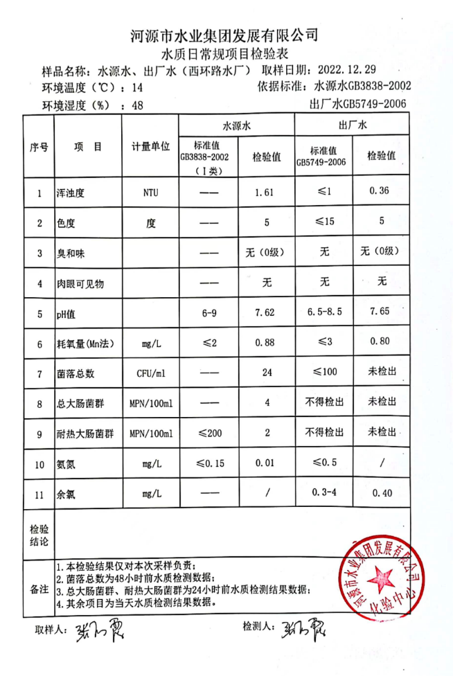2022年12月29日水質(zhì)檢驗(yàn)報(bào)告