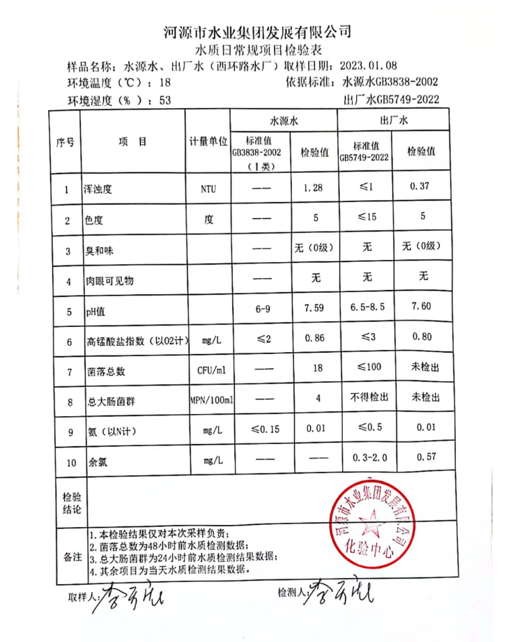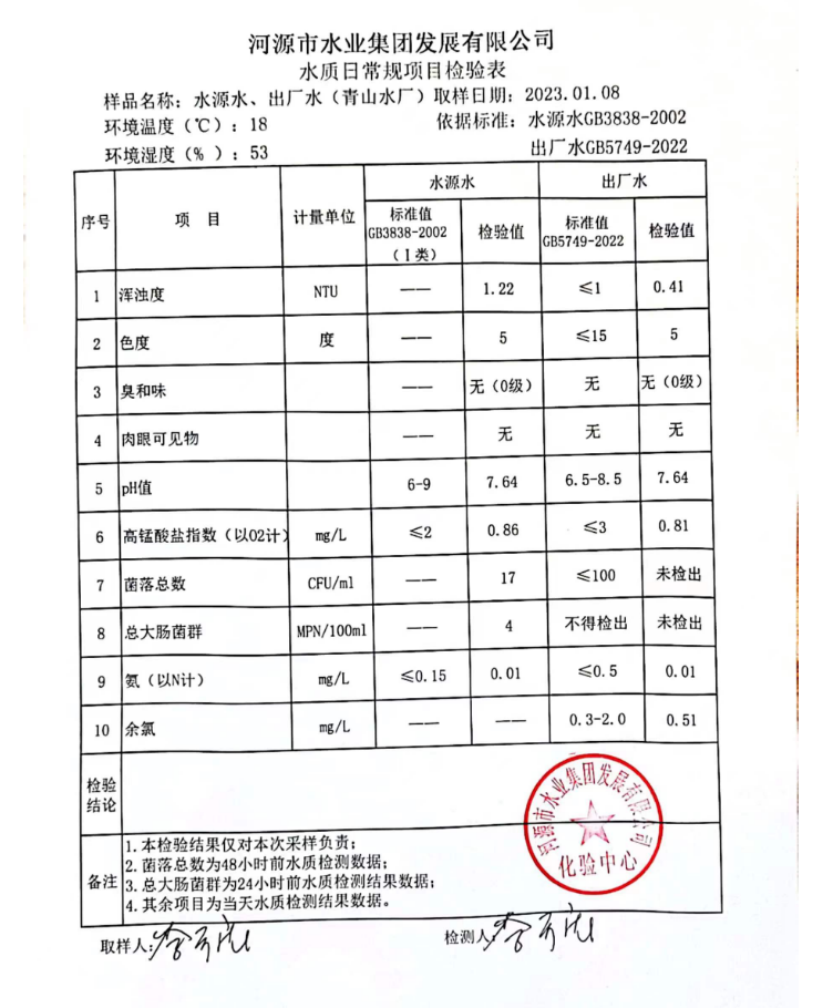 2023年1月8日水質(zhì)檢驗(yàn)報(bào)告
