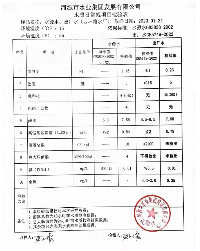 2023年1月24日水質(zhì)檢驗(yàn)報(bào)告