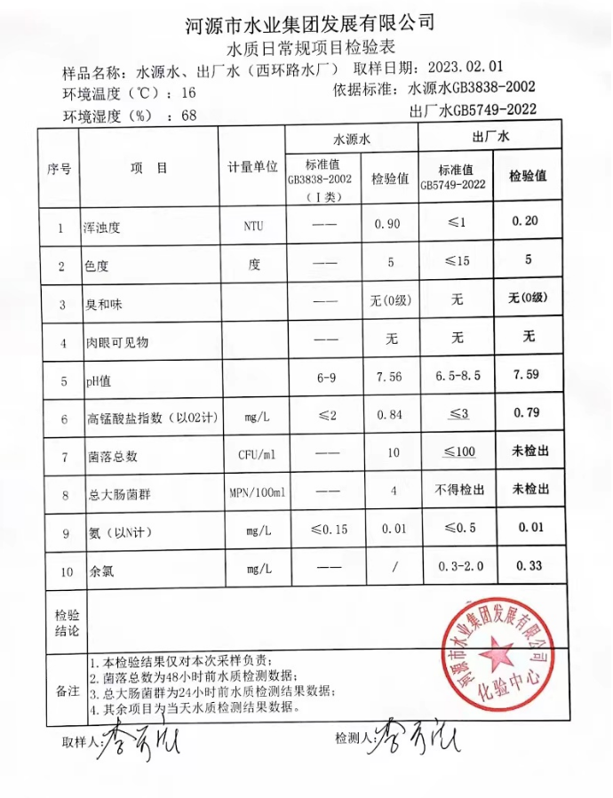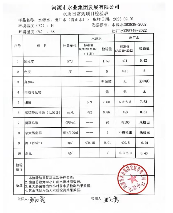2023年2月1日水質檢驗報告