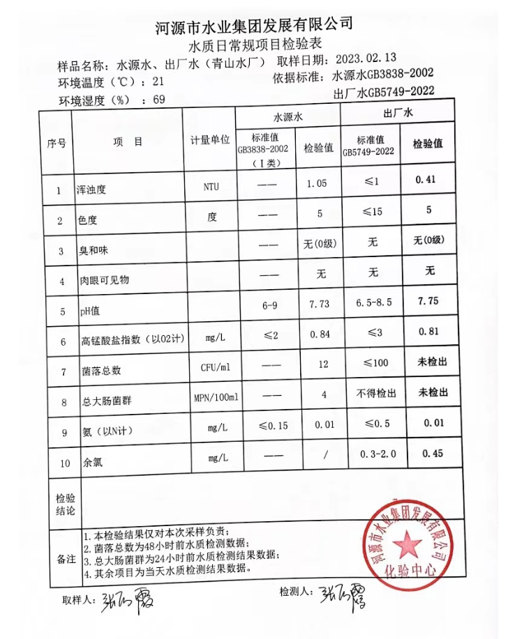 2023年2月13日水質(zhì)檢驗(yàn)報(bào)告