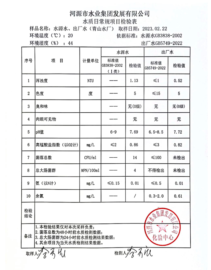 2023年2月22日水質(zhì)檢驗(yàn)報(bào)告