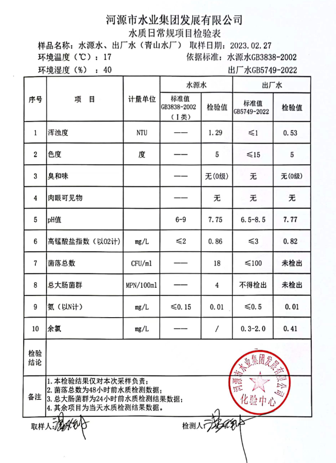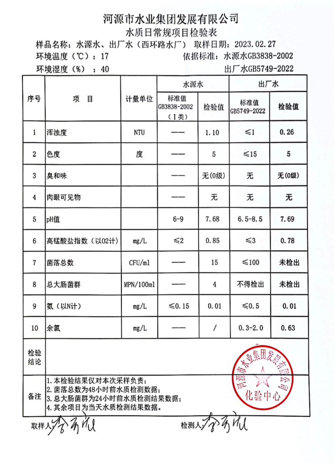 2023年2月27日水質(zhì)檢驗(yàn)報(bào)告