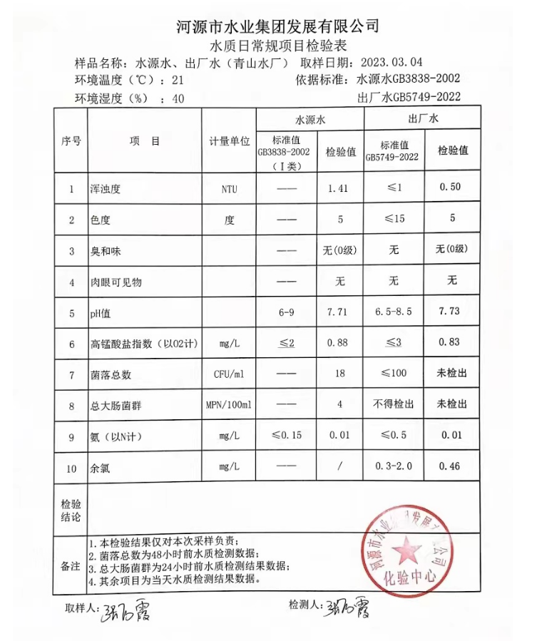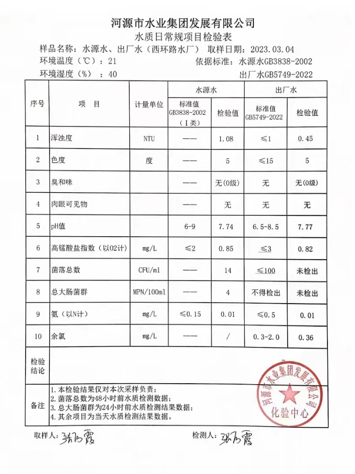 2023年3月4日水質(zhì)檢驗(yàn)報(bào)告
