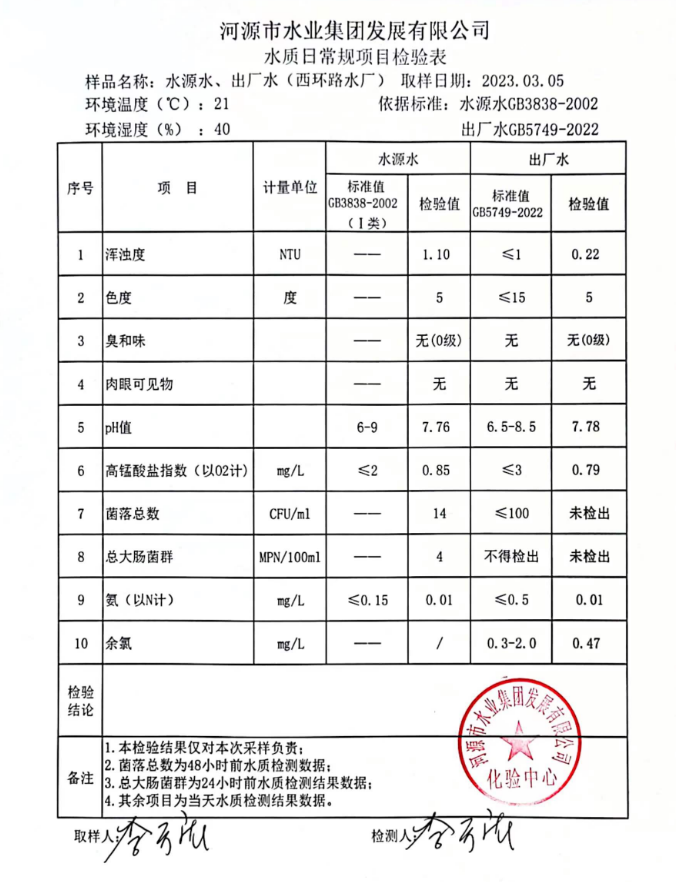 2023年3月5日水質(zhì)檢驗報告