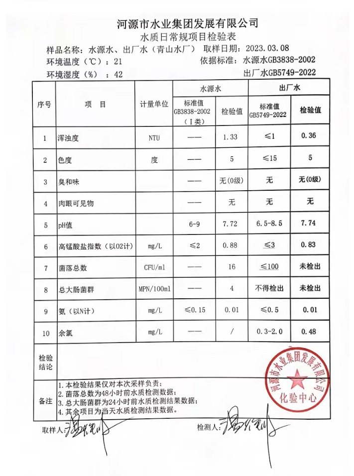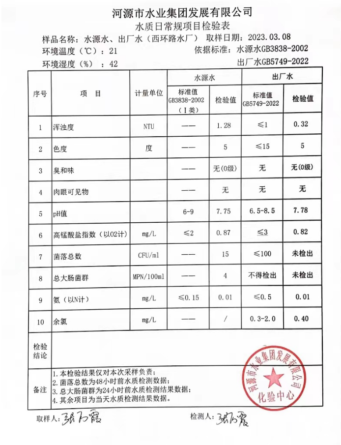 2023年3月8日水質(zhì)檢驗(yàn)報(bào)告